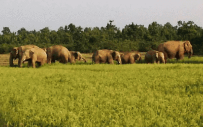 कञ्चनपुर, १० असोज । शुक्लाफाँटा नगरपालिका–५ का दुई बस्तीमा जङगली हात्तीले पाक्नै लागेको धानबाली खान