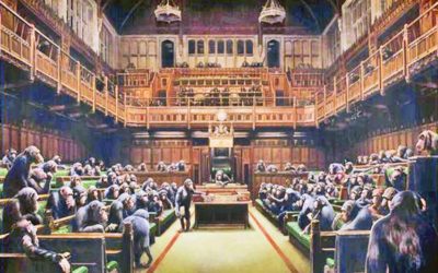 लन्डनको एक पेन्टरले पेन्टिङ गरेको ब्रिटिश संसद ‘हाउस अफ कमन्स’ मा बसेको चिम्पान्जीको तस्वीर सन्