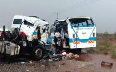 नैरोबी, ६ चैत । केन्याली विश्वविद्यालयका विद्यार्थी चढेको एउटा बस भारी वर्षाका कारण चिप्लिएर व्यस्त
