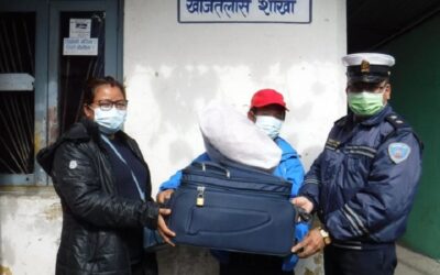 छुटेको लगेज ट्राफिक प्रहरीद्धारा सम्बन्धित धनिलाई हस्तान्तरण