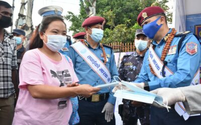 आईजीपी थापाले गौशाला चोकमा मास्क बाँडेपछि…(फोटोफिचर)