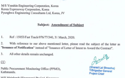देश महामारीसँग जुध्दै गर्दा फाष्ट ट्रयाकमा साँढे दुई अर्ब लागत प्रस्तावक परामर्शदाता छनोट विवादमा