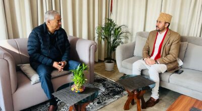 देउवा र ओलीलगत्तै दाहाल भेट्न हात्तीवन पुगे सञ्चारमन्त्री खरेल, निर्वाचनको तयारीबारे ब्रिफिङ