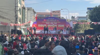 नेपाली कम्युनिष्ट पार्टीले आज काठमाडौंमा ‘एकता सन्देश सभा’ गर्दै