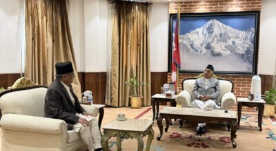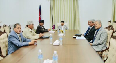 प्रधानमन्त्री ओली र देउवा भेट्नुअघि राष्ट्रपति पौडेलसँग प्रचण्डको भेटवार्ता