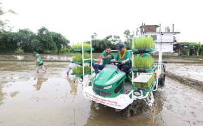 चितवन पुगेर प्रधानमन्त्रीले रोपे मेसिनबाट धान