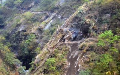 रुन्चेतगाउँ पुग्न भिर खोपेर झोलुङ्गे पुल बनाइँदै