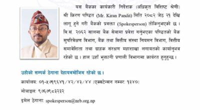 नेपाल राष्ट्र बैंकको प्रवक्तामा किरण पण्डित नियुक्त, आजदेखि लिए जिम्मेवारी