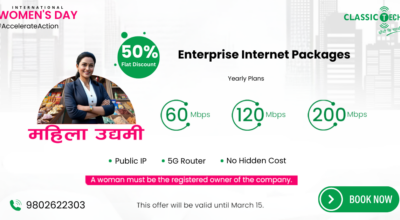 क्लासिक टेकको अन्तर्राष्ट्रिय नारी दिवस लक्षित महिला उधमी प्याकेजमा ५०% छुट!