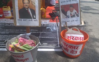सरकार पानी देउ भन्दै आएकाहरुले राखे नेताहरुको तस्विरसहित ‘लापता लापता लापता’ लेखिएको ब्यानर (फोटोफिचर)