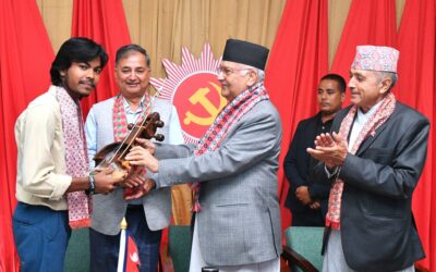 नेपाल आइडल विजेता करण परियारलाई ओलीले दिए सारङ्गी उपहार