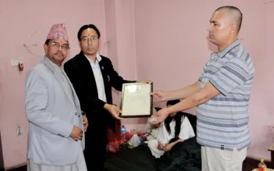 मन्त्री बुढाद्वारा मन्त्रालयमा कार्यरत कर्मचारी स्वर्गीय पुष्कर खड्काको परिवारलाई ५० हजार सहयोग