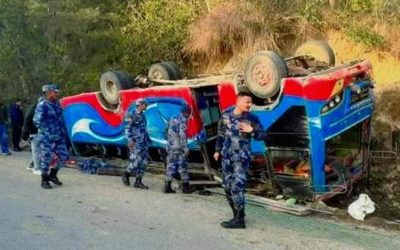 वनभोजका लागि विद्यार्थी बोकेको बस दुर्घटना हुँदा २० जना घाइते, २ को अवस्था गम्भीर