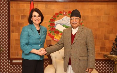 प्रधानमन्त्री दाहाल र अमेरिकी राष्ट्रपति जो बाइडेनकी राष्ट्रिय सुरक्षा परिषद्की वरिष्ठ निर्देशक लाउबाचरबीच शिष्टाचार भेट