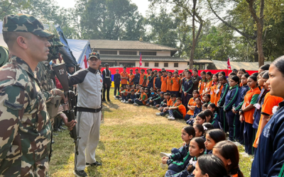 सैन्य सामग्री प्रदर्शनीमा विद्यार्थीको चाख