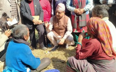राहत सामग्रीसहित उपप्रधानमन्त्री खड्का रुकुम पश्चिममा