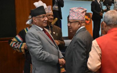 ओली–प्रचण्ड हँसिलो मुद्रामा
