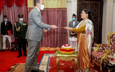 नेपालका लागि अमेरिकी राजदूत थम्प्सनले राष्ट्रपतिसमक्ष बुझाए ओहोदाको प्रमाणपत्र