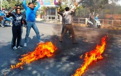 विप्लवका कार्यकर्ताले भद्रकालीमा टायर बालेर प्रदर्शन गरे (फोटोफिचर)