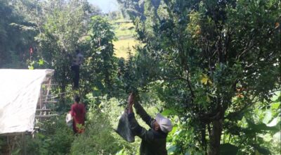 बाँदरले दुःख दिएपछि फल नपाक्दै सुन्तला टिप्दै किसान