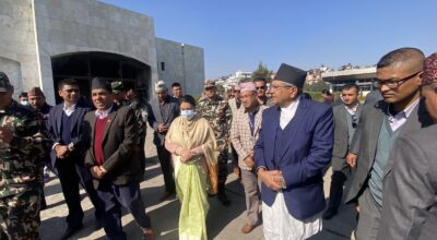पूर्वराष्ट्रपतिद्वारा आगजनी र तोडफोडबाट क्षतिग्रस्त सङ्घीय संसद् भवनको अवलोकन