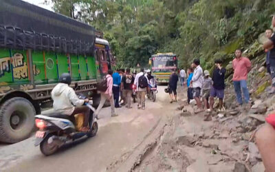 मौवाखोलामा पहिरो खस्दा पृथ्वी राजमार्ग अवरुद्ध