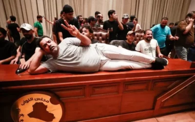 इराकः बग्दादमा उच्च सुरक्षा क्षेत्र तोडेर प्रदर्शनकारी संसद् भवनमा प्रवेश