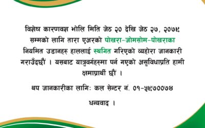 तारा एयरको पोखरा-जोमसोम- पोखरा उडान २७ जेठसम्म बन्द