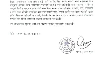 तारा एयरले भन्यो- जहाज अहिलेसम्म सम्पर्कमा छैन, खोजी कार्य जारी छ
