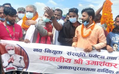 स्वास्थ्य सामाग्री लिएर गृहजिल्ला पुगेका पर्यटनमन्त्री अरगरियालाई भव्य स्वागत