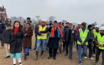 प्रचण्डद्वारा भरतपुरमा निर्माणाधीन क्रिकेट रङ्गशालाको अवलोकन