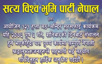 नवगठित सत्य विश्व भूमी पार्टी नेपालद्वारा १२१ हप्ते मठ-मन्दिर सरसफाई गर्ने घोषणा