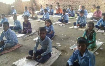 बोरा ओछ्याएर पढ्दै गौशाला नगरपालिकाका विद्यार्थी