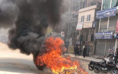 सडक बनाउन माग गर्दै साँखुमा चक्काजाम