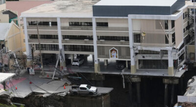 बैङ्ककमा सडक भासिँदा ठूलो खाडल, यातायात अवरुद्ध