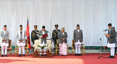 नवनियुक्त मन्त्री शर्माद्वारा पद तथा गोपनीयताको शपथ