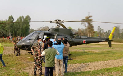 लहान बम विस्फोटका घाईते भण्डारीलाई हेलिकप्टरमार्फत काठमाडौं ल्याईयो