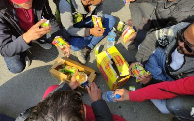 आम हड्तालमा उत्रिएकाहरु चाउचाउ खाँदै (फोटोफिचर)