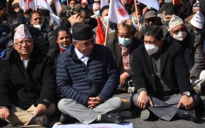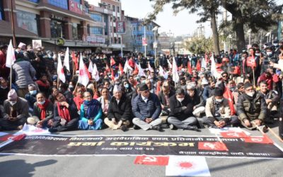 प्रचण्ड र माधव नेपालसहित नेताहरु फेरि माईतघरमा धर्नामा सहभागी हुँदै