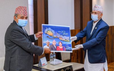 प्रधानमन्त्री ओलीद्वारा अधिकारीको ‘फर्केर आईन् मेरी आमा’ गीति एल्बम विमोचन