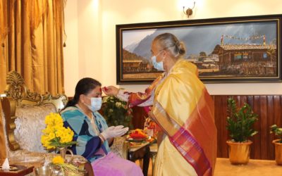 तस्विरमा हेर्नुहोस राष्ट्रपति भण्डारीद्धारा आमाको हातबाट टिका ग्रहण