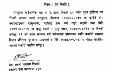 डोल्पामा होम क्वारेन्टिनमा बसेका एक जना पुरुषको निधन, कोरोनाको रिपोर्ट पोजेटिभ