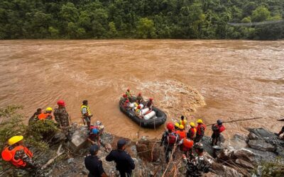 त्रिशूलीको बाढीले दुई जिल्ला जोड्ने झोलुङ्गे पुल जोखिममा