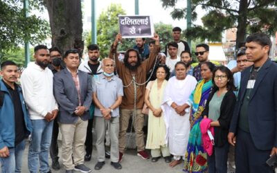 दलित समुदायको समानुपातिक प्रतिनिधित्वको माग गर्दै फलामे साङ्लोमा बाँधिएर प्रदर्शन