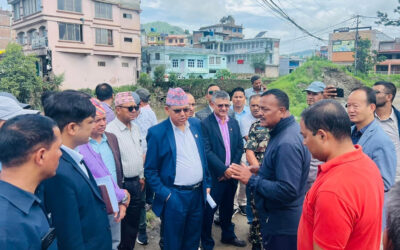 मन्त्री दाहालद्वारा बनेपाको डुबान क्षेत्र अवलोकन