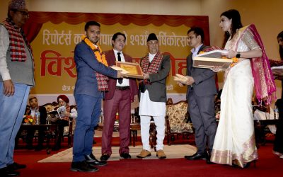 रिपोर्टर्स क्लबद्वारा गिरिजाप्रसाद पुरस्कार श्रेष्ठ तथा मदन भण्डारी पुरस्कार घिमिरे र जोशीलाई प्रदान