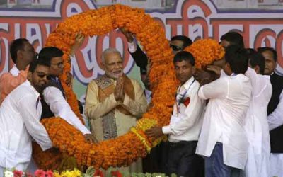 भारतीय प्रधानमन्त्रीलाई १२१ किलोका तीन वटा मालाबाट सम्मान