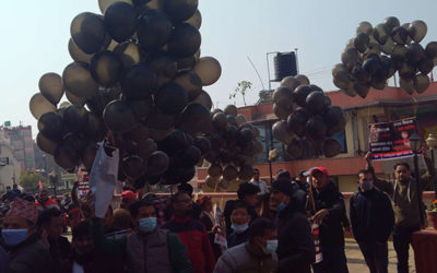 बेलून उडाएर प्रतिनिधिसभा विघटनको विरोध