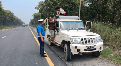 जीपमा ‘हुट’ : हटाउँदै ट्राफिक प्रहरी
