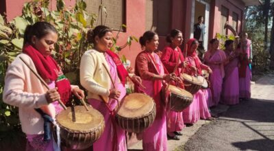 महिला समूहलाई नौमती बाजा बजाउन भ्याइनभ्याई